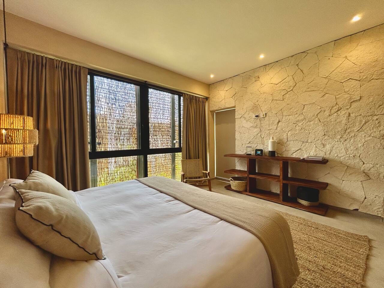 Discover our elegant and avant-garde bohemian apartment located in the heart of Tulum. This 2-bedroom apartment offers all the amenities you need for an unforgettable stay. Ideally located with easy access to major avenues, you'll be just 15 minutes away from the incredible Tulum Beach. Enjoy luxurious amenities, including a sparkling pool, a sun-drenched solarium, and a well-equipped gym. You'll love it!