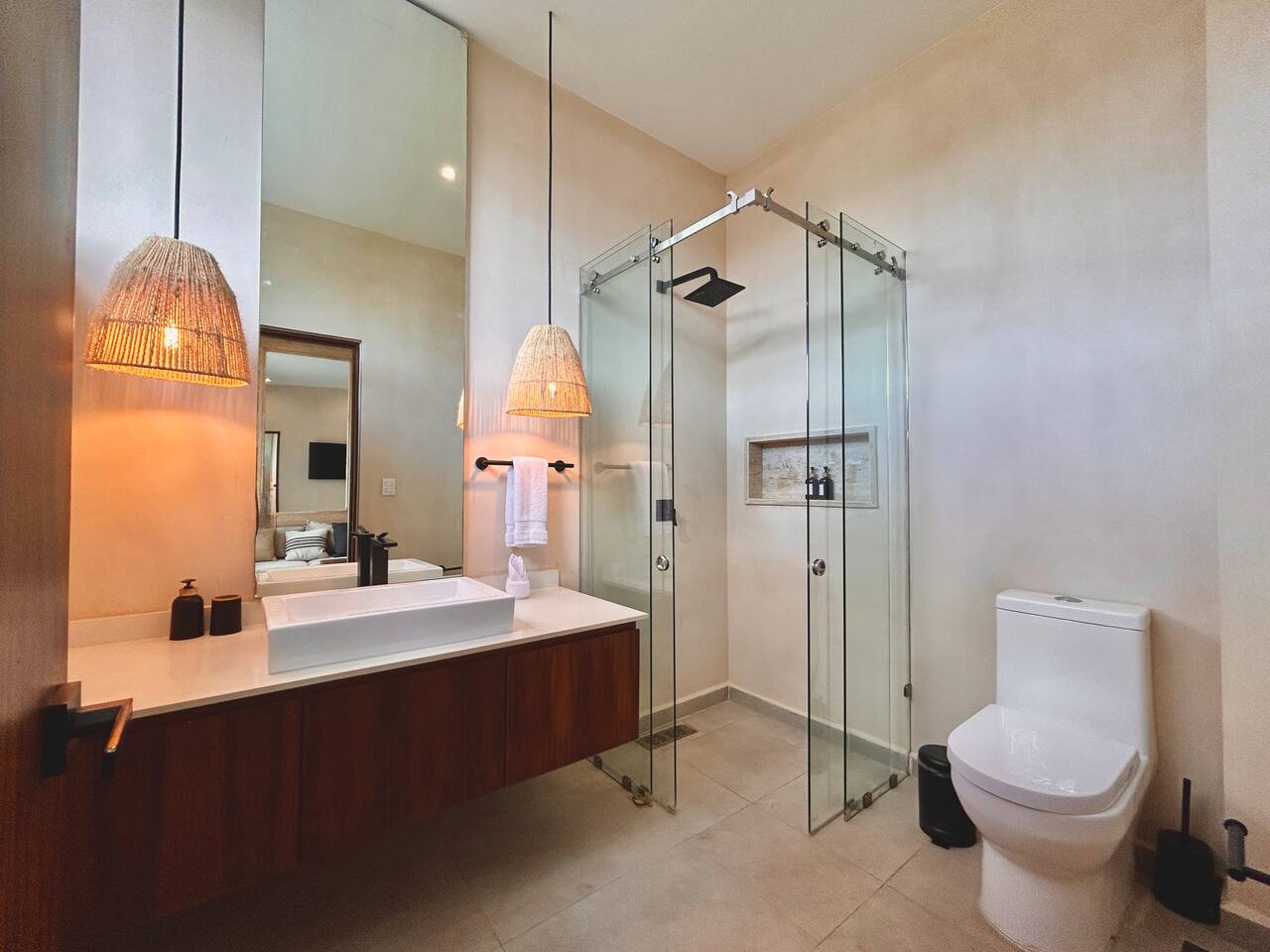 Carlo’s flat is a gorgeous modern jungle apartment. It is super clean, has modern furnishings with lots of marble finishes. It feel very perfect for visiting Tulum. So so so many nice restaurants and taco trucks within 15 min walking distance. And also lots of good clubs/bars/more restaurants within 25min walk!