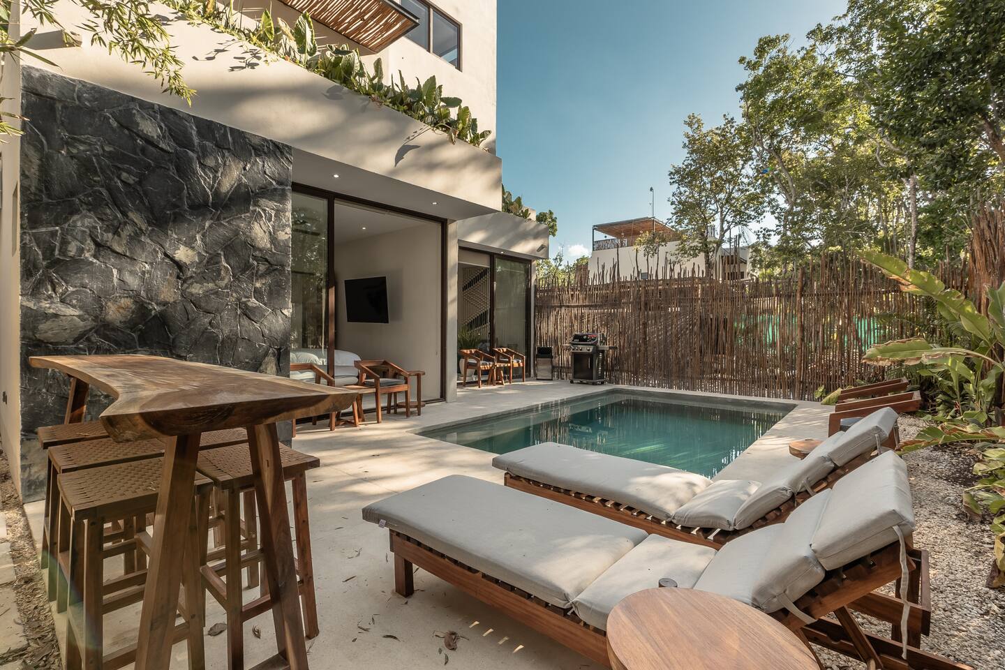Luxury Villa in MAKI Tulum – Exclusive & Private Retreat Welcome to this stunning 6-bedroom villa located in MAKI Tulum, a secure gated community just 10 minutes from Zamna and close to Tulum’s top attractions. Designed for luxury, privacy, and comfort, this property is perfect for groups, families, and travelers seeking an unforgettable experience. Spaces & Amenities 🏡 6 King Bedrooms – Each with a private bathroom & Smart TV 📺 for ultimate comfort. 🛋️ 3 Couch Beds – Extra space for additional guests. 🍽️ 2 Fully Equipped Kitchens – Featuring an oven, air fryer, and everything needed for a perfect culinary experience. 🏊♂️ 2 Private Pools – One on the ground floor and another on the rooftop, ideal for breathtaking views and relaxation. 🔥 2 Weber BBQ Grills – Perfect for outdoor dining and gatherings. 🚗 Private Parking – Secure space for your vehicles. 🚲 Mobility Included – 2 scooters & 3 bicycles to explore Tulum at your own pace. 🎨 Stylish Decor – A luxurious yet bohemian ambiance reflecting the essence of Tulum. Prime Location 🌴 Nestled in the exclusive MAKI Tulum community, a secure and peaceful area that offers privacy while staying close to the city's vibrant energy. 🎶 Only 10 minutes from Zamna, home to Tulum’s best music events and festivals. 🏖️ A short drive to stunning beaches, top restaurants, and breathtaking cenotes in the Riviera Maya. Experience an unparalleled stay in this luxury villa, where every detail is designed to make your trip unforgettable. Book now and enjoy the best of Tulum! 🌊✨