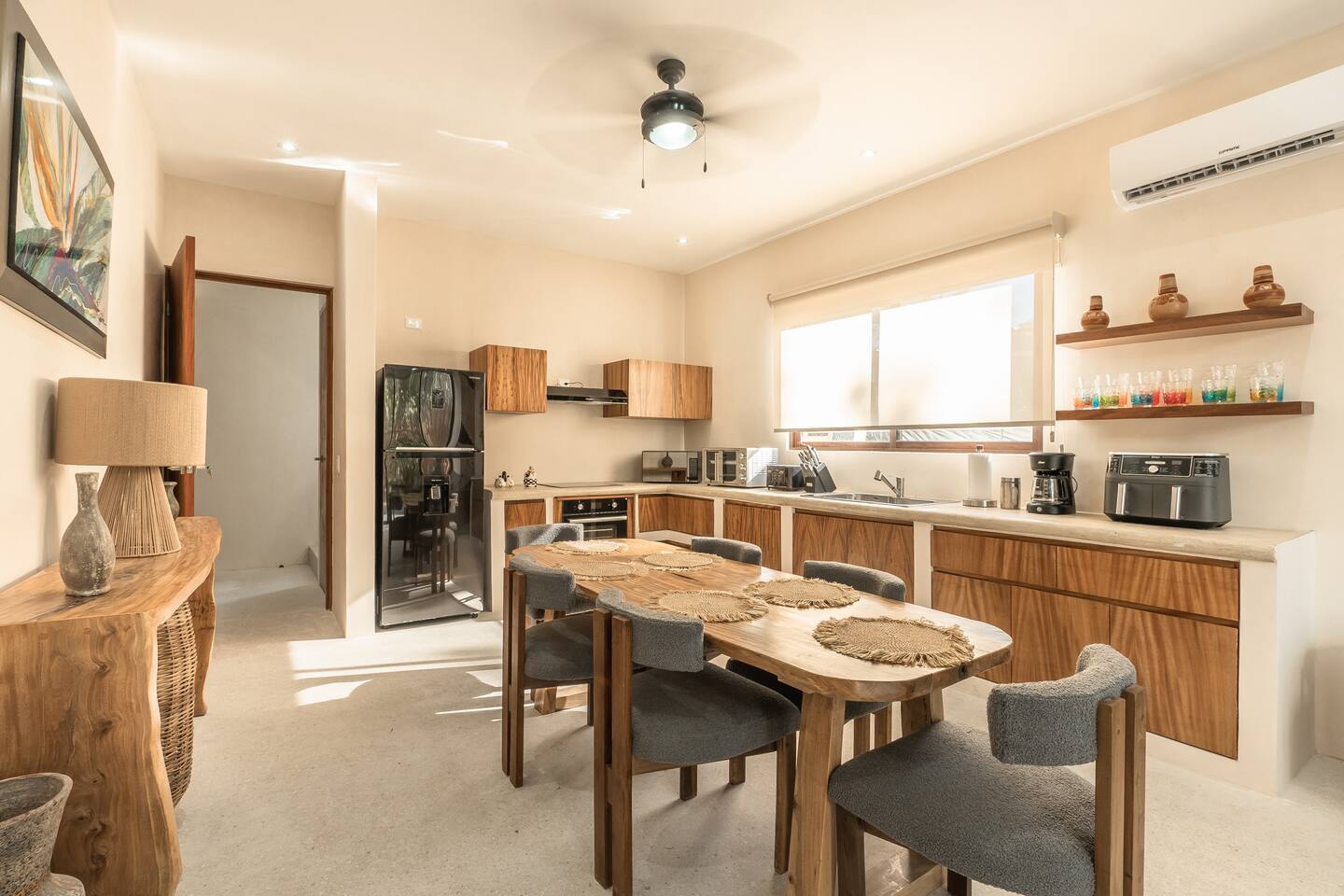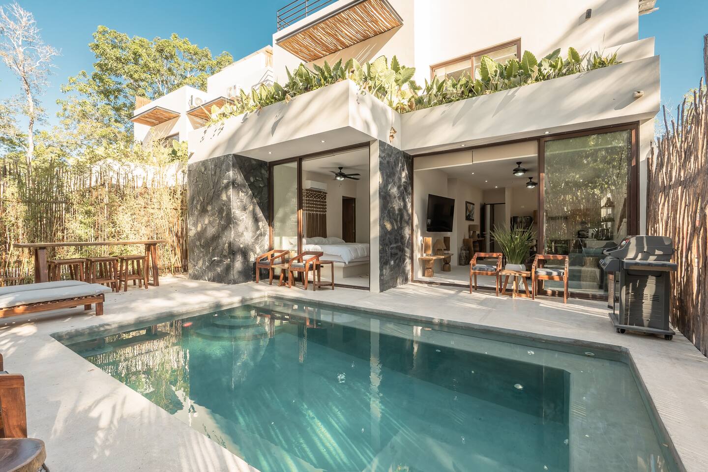 Stay in this stunning 6-bedroom villa in the exclusive MAKI Tulum, just 10 minutes from Zamna! 🌿🏡 Enjoy: 6 King Bedrooms w/ private bathrooms & smart TVs 📺 3 Couch Beds for extra guests 🛋️ 2 Fully Equipped Kitchens 🍽️ 2 Pools (incl. a rooftop pool) 🏊♂️ 2 Weber BBQ Grills 🔥 2 Scooters + 5 Bicycles 🚲 A luxury retreat in a chill, gated community—perfect for your Tulum getaway! 🌴✨