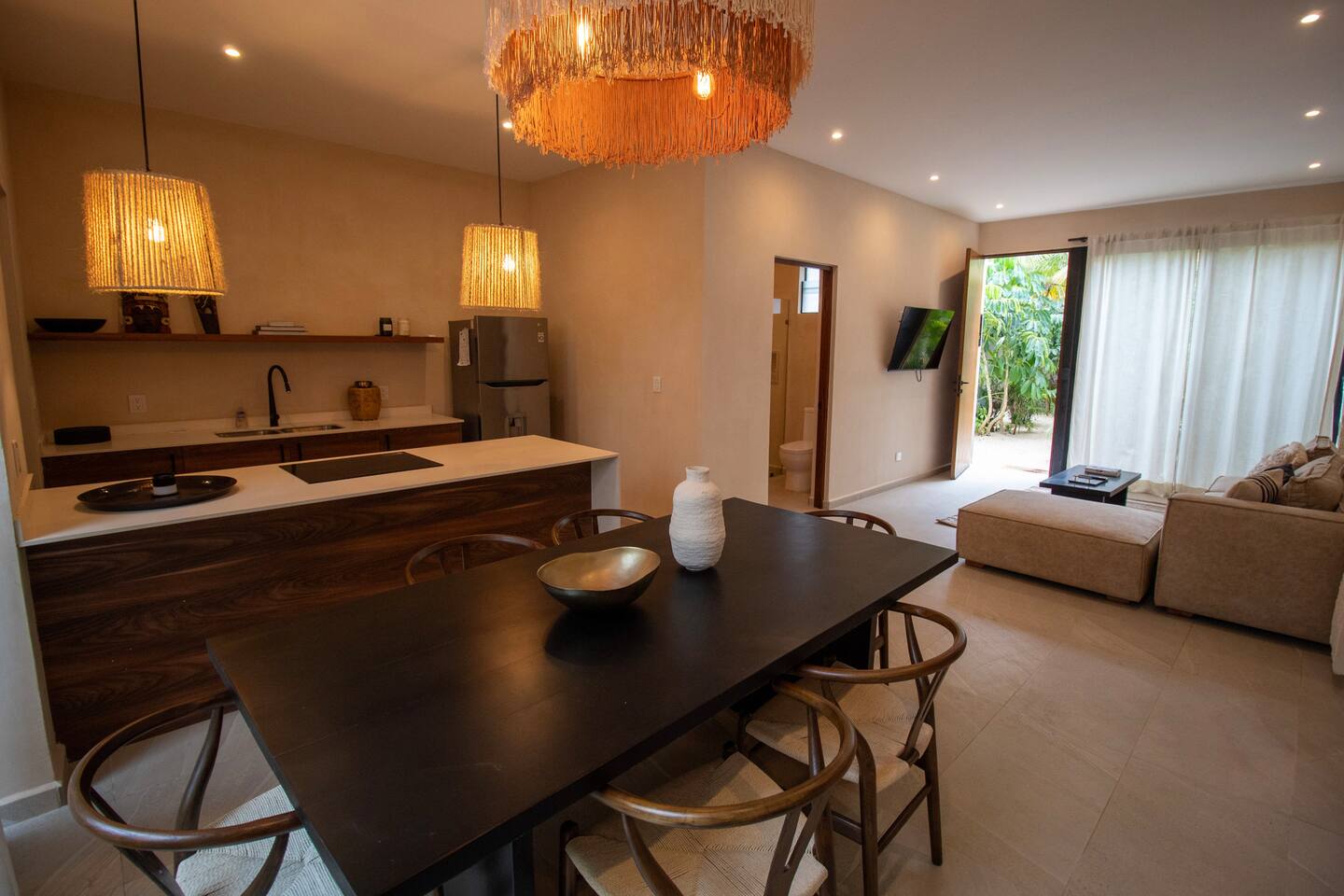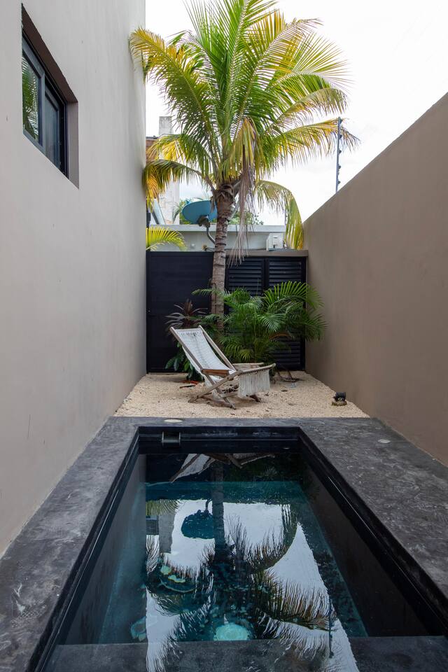Discover our chic, bohemian avant-garde apartment nestled in the heart of Tulum. This 2-bedroom apartment offers all the comforts you need for an unforgettable stay. Ideally located with easy access to main avenues, you'll be just 15 minutes away from the hotel zone beach. Indulge in luxurious amenities, including a sparkling pool, sun-drenched solarium, and well-equipped gym. Experience the vibrant Tulum lifestyle from the comfort of our stylish retreat. Fell the energy ! Great deal for you