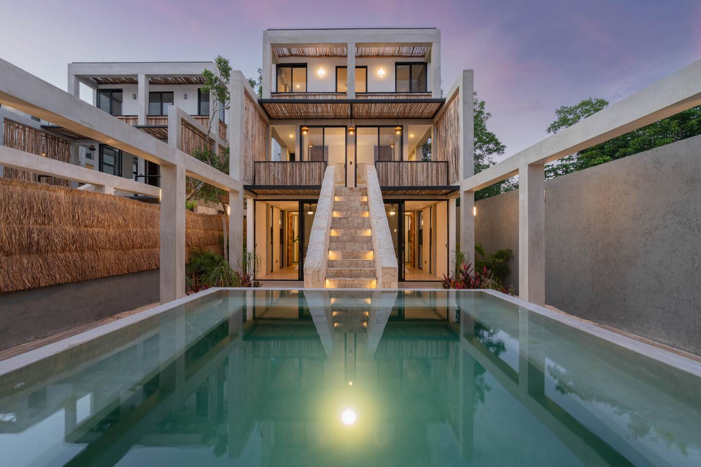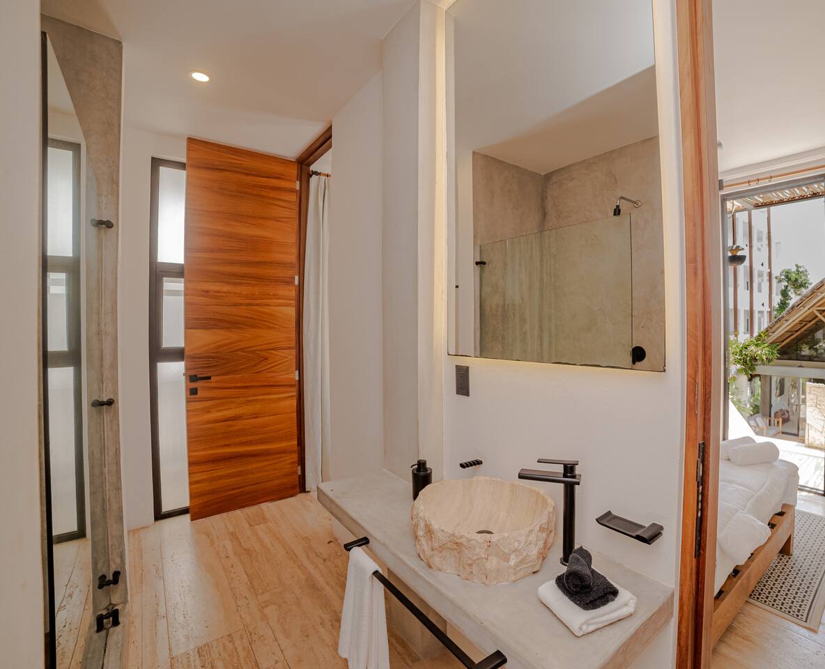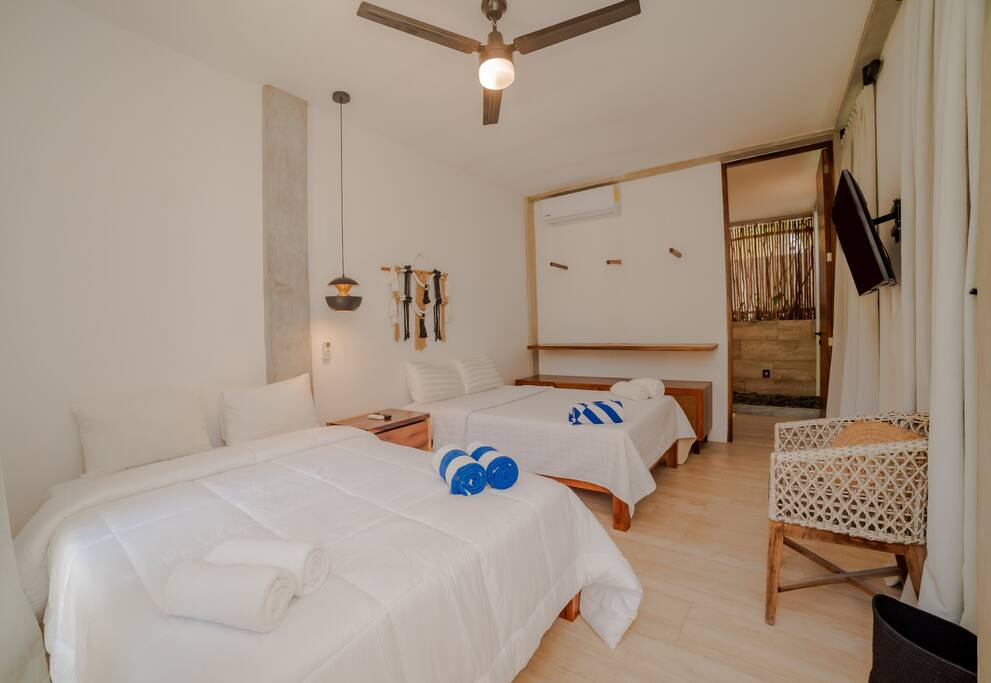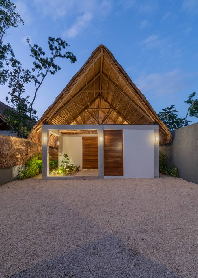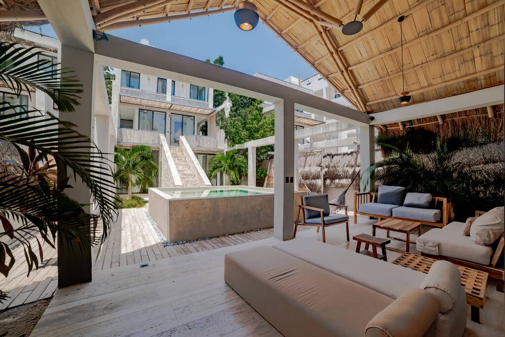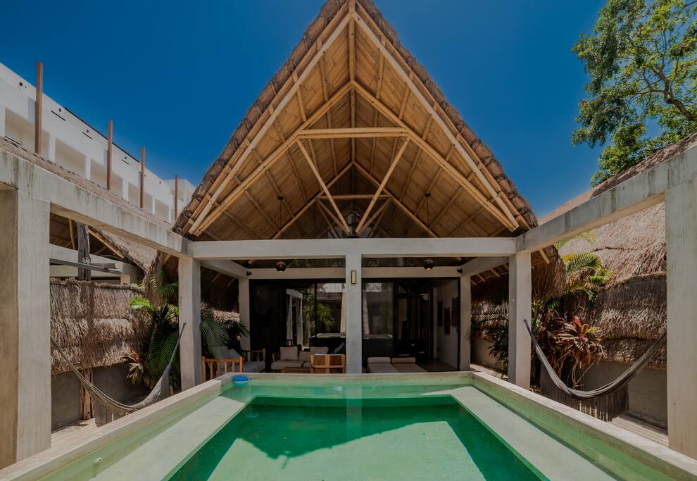 This spacious villa hosts up to 12 guests and features a private pool, generous living and dining areas, and modern design throughout. Each of the 4 bedrooms includes an en-suite bathroom for comfort and privacy. Located just 7 minutes from the beach and close to Tulum’s vibrant nightlife in La Veleta and the Hotel Zone, it’s the perfect blend of relaxation and convenience for groups and families.