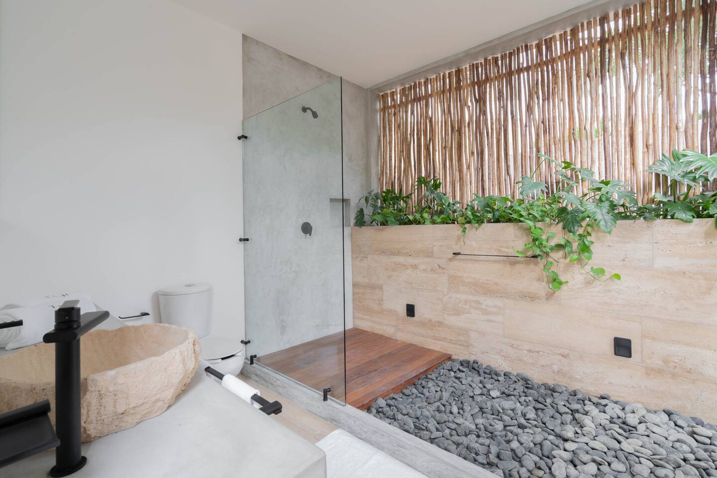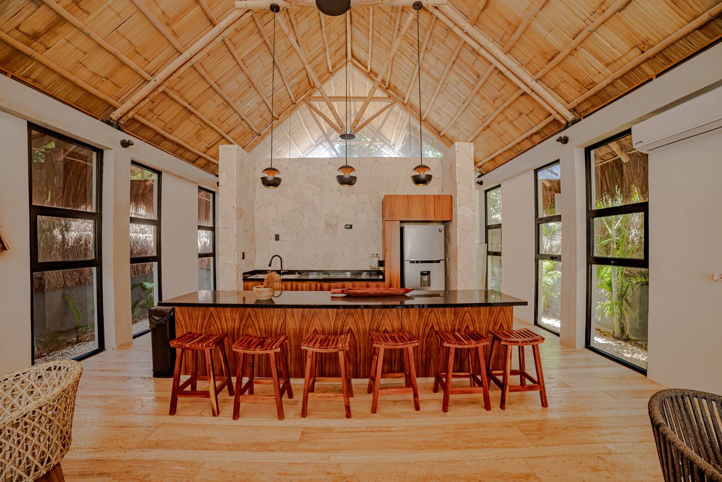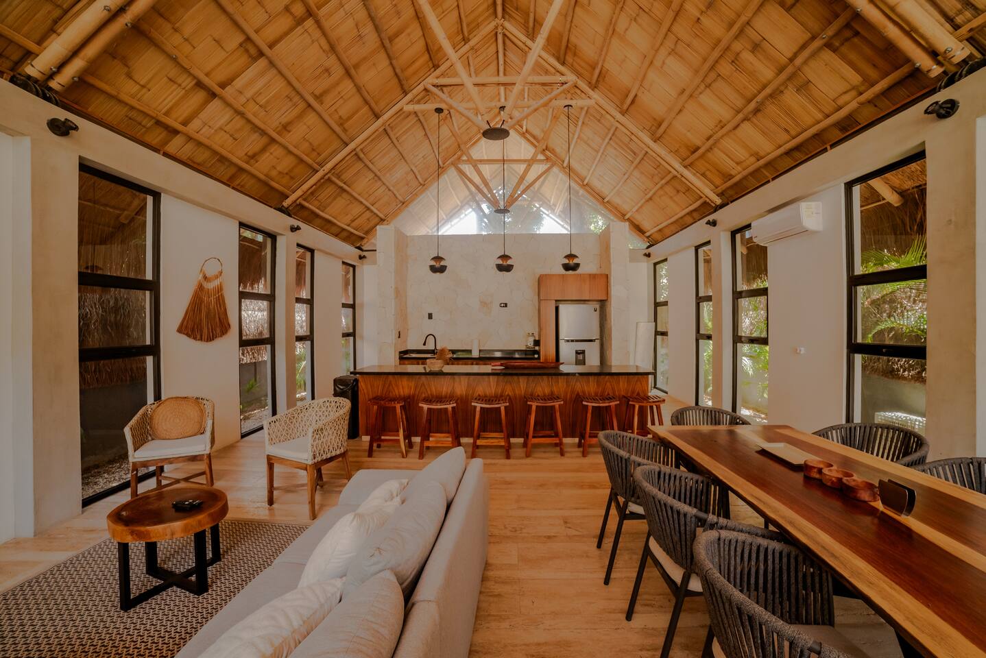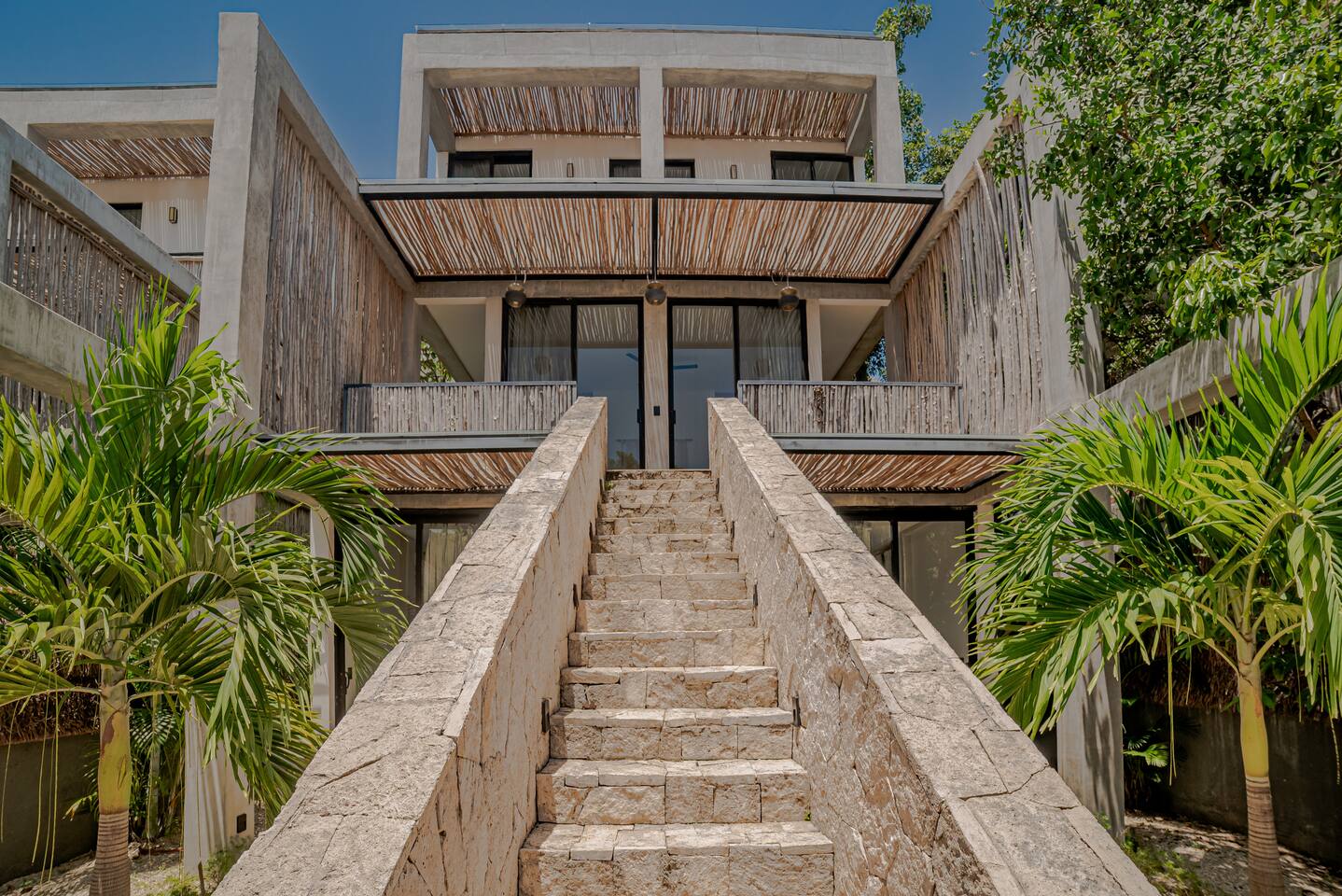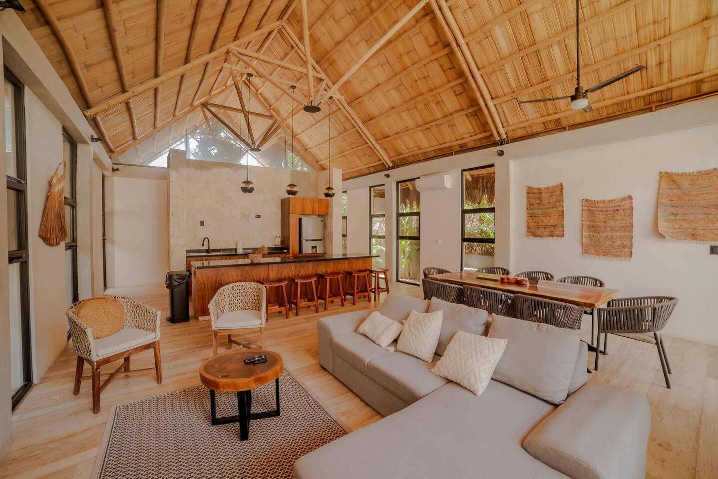 This spacious villa hosts up to 12 guests and features a private pool, generous living and dining areas, and modern design throughout. Each of the 4 bedrooms includes an en-suite bathroom for comfort and privacy. Located just 7 minutes from the beach and close to Tulum’s vibrant nightlife in La Veleta and the Hotel Zone, it’s the perfect blend of relaxation and convenience for groups and families.