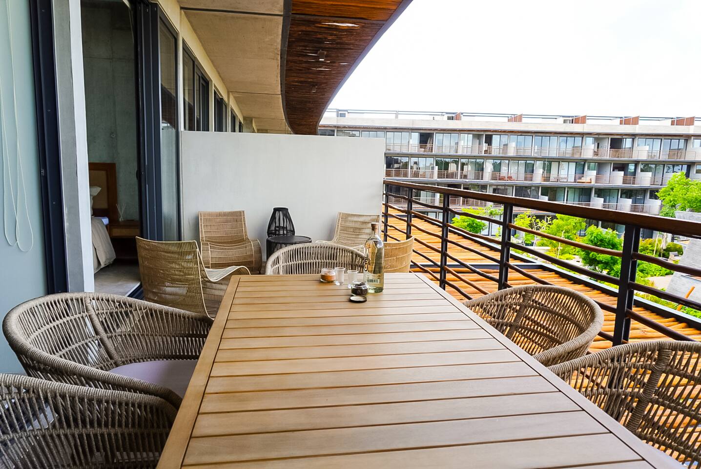 Welcome to Beautiful Tulum, a modern and cozy condo designed for relaxation and comfort in paradise. Located in a resort-style complex, this space has everything you need for an unforgettable stay. It features 2 spacious bedrooms: The master bedroom offers a King-size bed, closet, and direct access to a full bathroom. The second bedroom has two double beds, ideal for families or groups. Both rooms include A/C and large closets. There are 2 full bathrooms to ensure privacy and comfort. The kitchen is fully equipped with a stovetop, oven, large refrigerator, and all cooking essentials. Enjoy the private terrace with a cozy outdoor lounge area and dining table, perfect for relaxing or having breakfast surrounded by nature. As a guest, you’ll also enjoy: A stunning 100-meter-long swimming pool Sun deck with loungers and bar Fully equipped gym Changing rooms, elevator, and parking 24/7 security Live the Tulum experience with modern style and comfort at Beautiful Tulum.