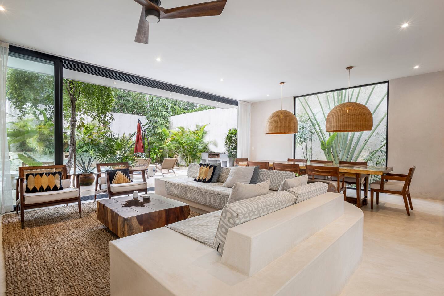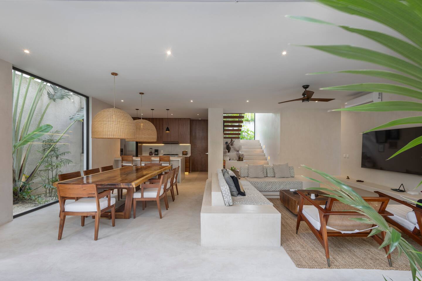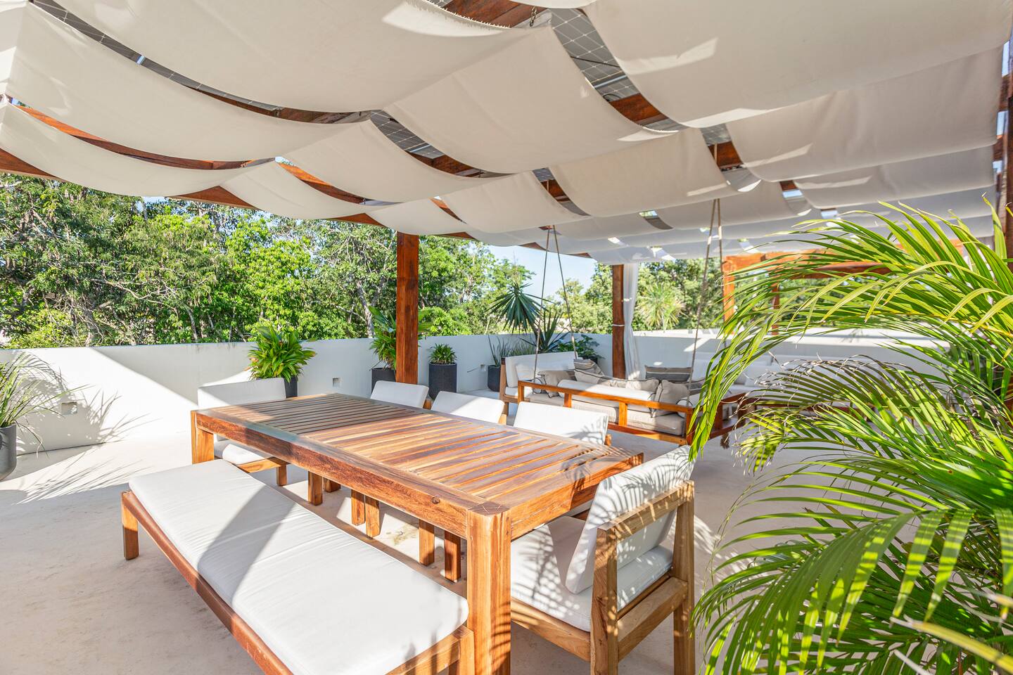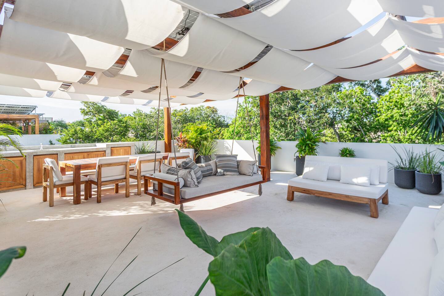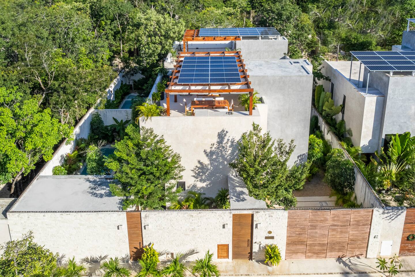 🏡 Lo que ofrece la villa: ✨ 4 habitaciones amplias: -3 en el segundo piso, cada una con cama king y un diseño elegante. 2 baños de lujo con acabados de primera. -1 habitación en un anexo privado con cama queen, mini cocina independiente y vista a la alberca. 🍽 Sala y comedor abiertos, ideales para compartir momentos especiales. 👨🍳 Cocina amplia y totalmente equipada. 🧺 Cuarto de lavado y alacena, perfectos para estancias largas. 🏊♂️ Alberca privada, rodeada de vegetación para mayor privacidad. 🌅 Rooftop exclusivo, ideal para reuniones, atardeceres espectaculares y una buena carne asada con amigos. Ubicada en una comunidad segura, esta villa combina lujo, naturaleza y proximidad a las mejores playas, restaurantes y atracciones de Tulum.